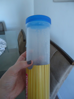 Outra comprinha mais baratinha foi esse potinho para guardar macarrão espaguete, achei bacana pois nunca usamos um pacote todo e fica melhor guardar em um potinho adequado, ele tem em alto relevo escrito "massas" em várias linguás...