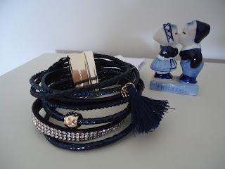 Achei tão linda essa pulseira azul marinho com esses detalhes... e o fecho dela é de imã, super prática: