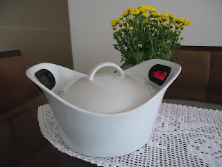 Também ganhei dela esta travessa linda, ela é perfeita para colocar uma sopa, uma carne assada de panela talvez, enfim, várias utilidades...rs... Achei lindaaa e não tinha nenhuma neste estilo: